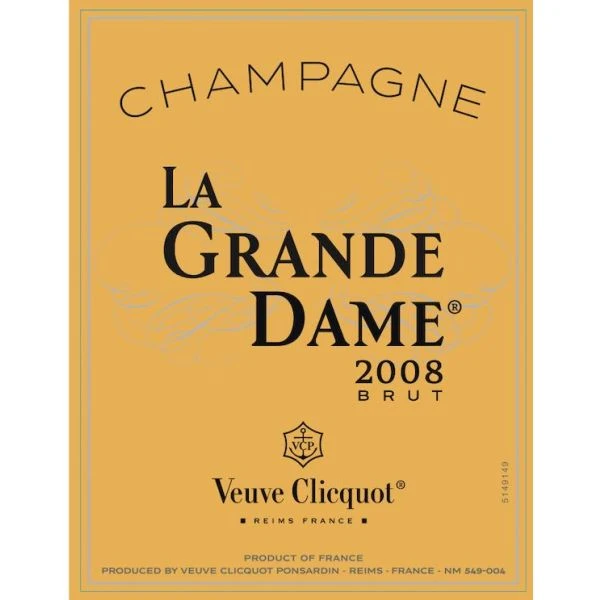 La Grande Dame, the prestige cuvée of Veuve Clicquot was created in tribute to Madame Clicquot. The finest expression of the House style it is a wine of incomparable finesse.Veuve Clicquot La Grande Dame 2008 is a great wine for gastronomy. This cuvée will pair extremely well with oysters, fish tartare, seafood or even chicken with sesame.On the eye, La Grande Dame 2008 light gold color has a surprising glint. The initial nose reveals a strong attack, both aerial and delicate. Upon being released it presents notes of dried fruits (almonds, figs, apricots), ripe white fruits (pears), and finally, subtle toasted notes of hazelnut and praline. Thus, those luscious pastry notes are well balanced with the blend’s freshness and clarity.On the palate, the attack is strong and sharp. La Grande Dame 2008 bestows a silky texture upon young fruits, carried by citrus and red fruits (cherry) notes. The Pinot Noir, signature of the Veuve Clicquot’s style, shines extraordinarily by its freshness, minerality and power. La Grande Dame 2008 is a perfect combination of complexity, structure and strength.La Grande Dame 2008 is an exclusive blend of 6 of the House’s 8 historical Grands Crus. Blend: 92% Pinot Noir (Ay, Ambonnay, Bouzy, Verzy, Verzenay) and 8% Chardonnay (Le-Mesnil-sur-Oger)